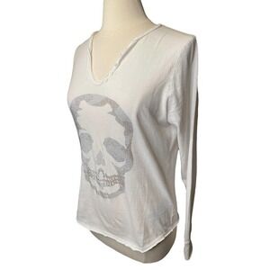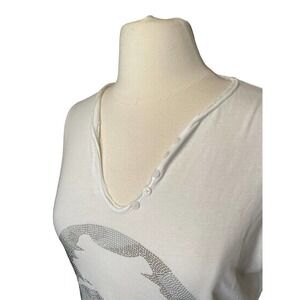 ZADIG & VOLTAIRE NWT Tunisien Camo Strass Skull Henley Shirt Medium White