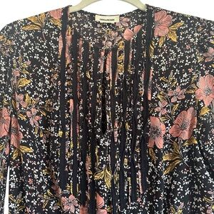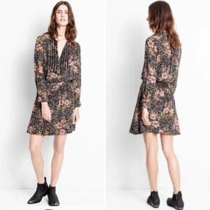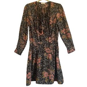 Zadig & Voltaire Remus Print Silk Dress. Zadig & Voltaire dress in a vintage floral print. Featuring long sleeves, inlaid lace at the front, flounces at the hem, smocking at the back of the waist, front pleating, a keyhole button front, and button cuffs. In a relaxed silhouette. The hem hits just about knee length. 100% silk.