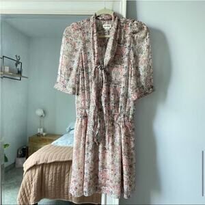 Delicate beading anchors the hem of this light and drapey dress with a bohemian floral print, tie neck and structured puff sleeves. Style Name: Zadig & Voltaire Rewel Mousseline Floral Beaded Dress. Style Number: 6171332.