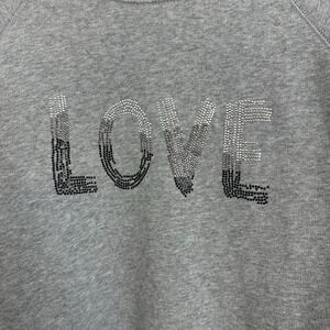 ZADIG & VOLTAIRE SWEATSHIRT WOMENS MEDIUM GREY LOVE STRASS SEQUIN LOGO CREWNECK 100% COTTON