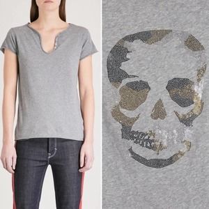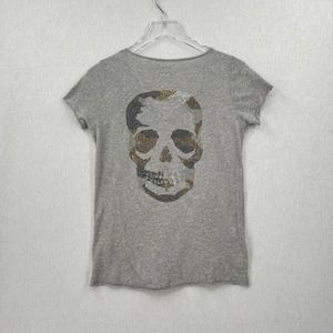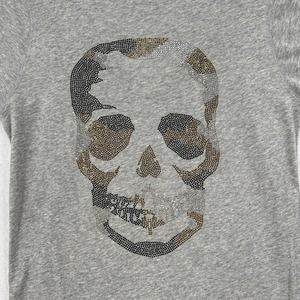 ZADIG & VOLTAIRE Shirt Womens Medium Heather Gray Tunisien MC Skull Camo Strass Tee