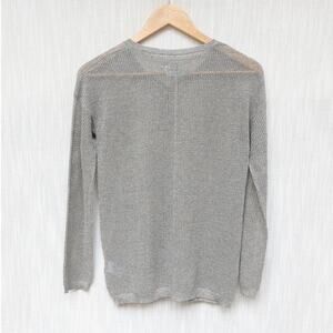 ZADIG & VOLTAIRE Silver Metallic Sheer Knit Long Sleeve Button Cardigan, size S