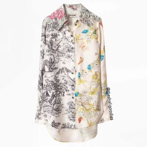 Zadig&Voltaire women's mixed all over printed shirt. 100% Silk. Approx. 21" pit to pit and 36" in length.