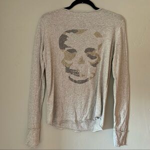 ZADIG & VOLTAIRE Tunisien ML Skull Camou Strass Long Sleeve Tee Shirt