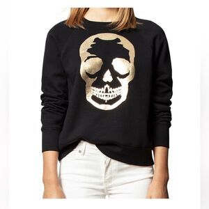ZADIG & VOLTAIRE Upper Skull Gold and Black Cotton Pullover Sweatshirt SMALL