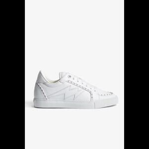 ZADIG & VOLTAIRE Zv1747 Flash White Cow Leather Low Top Studded Sneakers Sz 38
