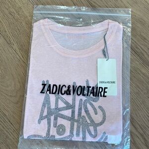 ZADIG & Voltaire Art is Truth Pink Rhinestone graffiti T-shirt
