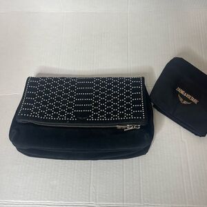 ZADIG&VOLTAIRE Rock Suede Scale Studs Black bag clutch Missing chain