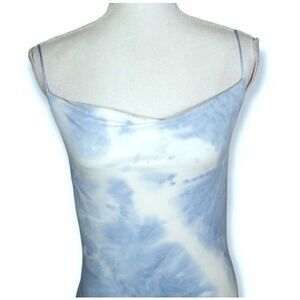 ZAFUL BLUE & WHITE TIE DYE SIDE SLITS COWL NECK CAMI MINI DRESS SZ.M NWT.