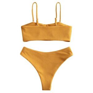 ZAFUL Gold Bandeau Top and Hi-Cut Hi-Waisted Bikini Bottom Set SIZE Medium NWT