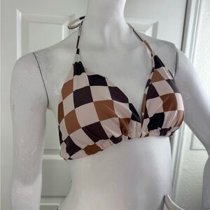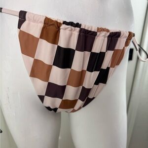 Dive into style with Zaful's chic bikini featuring a retro checkered pattern in brown and black. This two-piece set includes triangle cups and tie-side bottoms, perfect for making a statement at the beach.