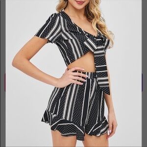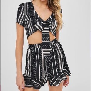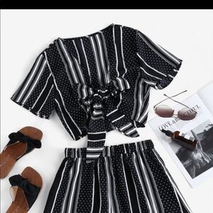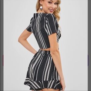 ZAFUL Knot Tie Polka Dot Polyester Short Set Small