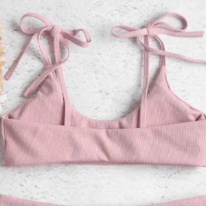 ZAFUL Light Pink Tie Shoulders Ribbed Bikini