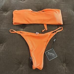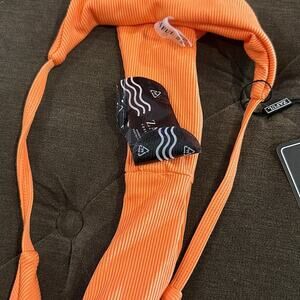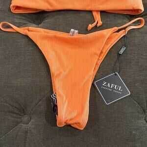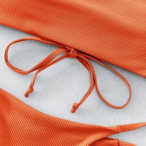 ZAFUL Ribbed Lace Up Bandeau String Bikini Swimsuit - Orange L NWT
