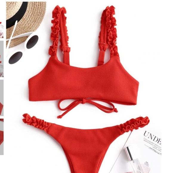 ZAFUL Ribbed Lace up Ruffle Bikini