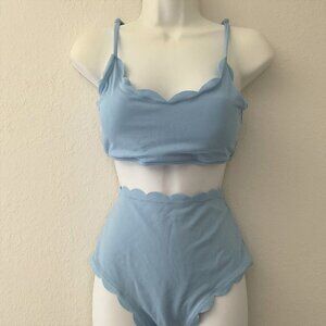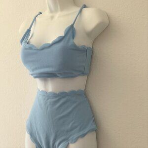 ZAFUL SCALLOPED TEXTURED HIGH-RISE BIKINI SWIMSUIT