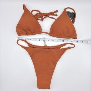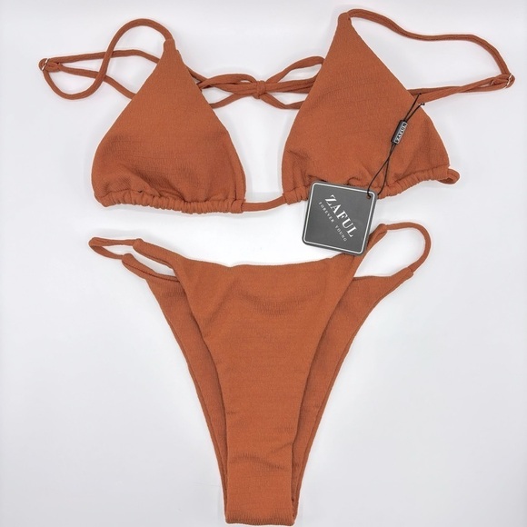 ZAFUL Triangle Bikini Cami String Swimwear Texture High Cut Thong Swimsuit XS