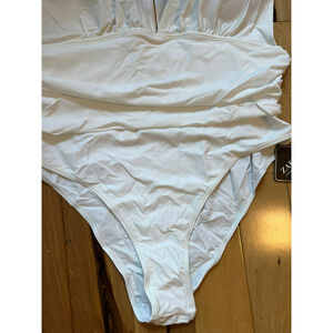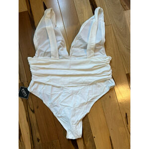 ZAFUL WOMEN'S ONE PIECE SWIMSUIT RUCHED FRONT V-NECK WHITE SIZE 18 SWIMWEAR