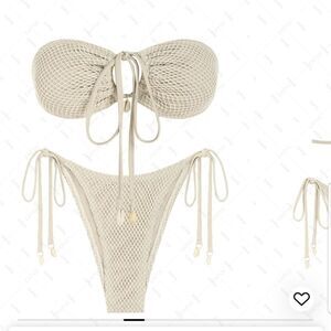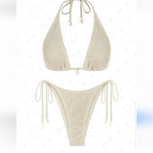 ZAFUL Women Bikini Set Two Piece Textured Beaded Tie Back Halter Cheeky Swimsuit