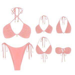 ZAFUL Women's Fishnet Triangle Bikini Set – Pink, Size Small (NWOT)