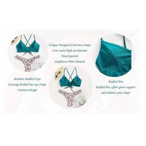 •Design: Fashion floral resort style bikini design,Two-piece padded sleeveless bikini. Elastic, fashion and sexy.