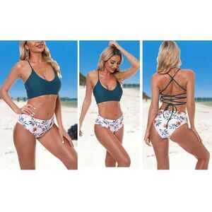 ZAFUL Women's Floral Print High Cut Crossback Lace-Up Bikini