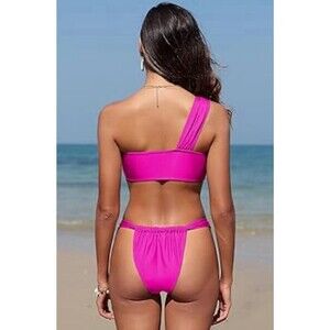 Turn heads on the beach or by the pool with this stylish ZAFUL Women's One Shoulder Bikini Set. Featuring a chic twisted bandeau top with a flattering rushed design, this bikini offers a modern, sleek silhouette. The high cut bikini bottoms elongate the legs and provide a comfortable yet trendy fit. Perfect for soaking up the sun, this bikini set in size Small (S) is both comfortable and eye-catching. Ideal for pool parties, beach days, and tropical vacations, this swimwear will have you feeling confident and ready for the water.