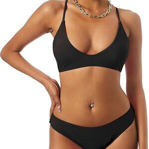 ZAFUL Women's Tie Back Padded High Cut Bralette Bikini Set Two Piece Swimsuit