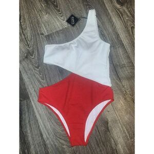 ZAFUL Ribbed 2-Tone Block One Shoulder One Piece Swimsuit Women's Size 8