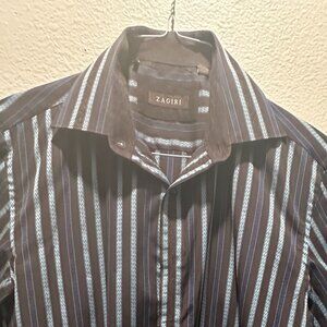 ZAGIRI Button Up Shirt Mens Large Brown/Blue striped size L