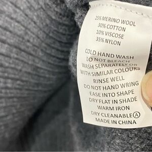 Mock funnel neck merino wool blend color block sweater featuring checkered print sleeve. Ribbed hem with side slit.