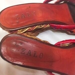 ZALO Leather and Straw Wedge Sandals