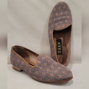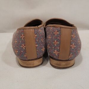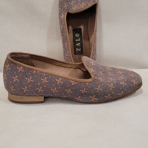 Zaol vintage jacquard fabric slip-on flats with leather soles. (sz 6-1/2). Step out in style with Zalo's women's loafers, featuring a chic blue, tan & rust pattern. Perfect for any occasion, these shoes offer both comfort and elegance.