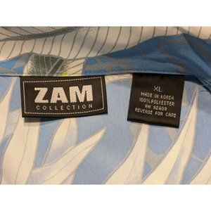 ZAM Collection short sleeved blue Hawaiian Aloha button front polyester shirt XL
