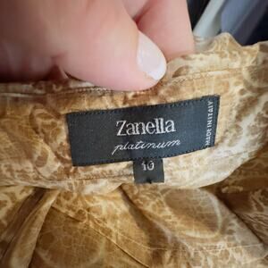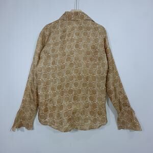 ZANELLA Platinum Silk Blouse Womens Gold Floral Print Button Down Shirt Italy 10