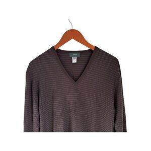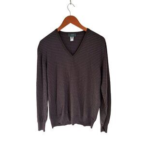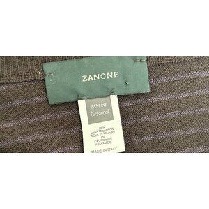 ZANONE Made in Italy V-Neck Sweater Fine Knit Wool Brown Stripes Size 52/US Med