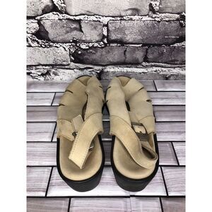 ZANTE Beige Tan Nubuck Leather Casual Wedge Strap Sandals Women Sz 39EU/8.5M US