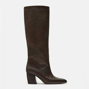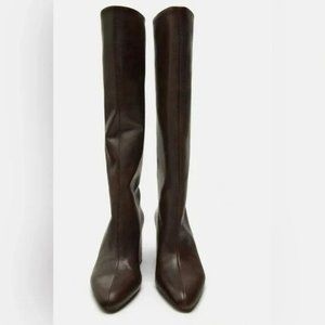 ZARA 100% COW LEATHER HEELED KNEE HIGH BOOTS