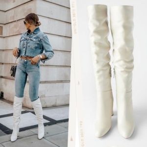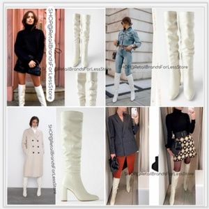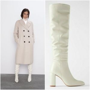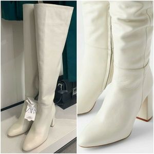 ZARA 100% LEATHER HIGH LEG HEELED BOOTS