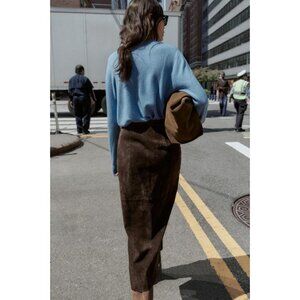 ZARA 100% LEATHER WRAP MIDI SKIRT