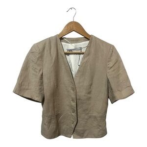 ZARA 100% Linen Vest Jacket Beige Women's Size Small Tuxedo