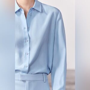 100% SILK ZARA ZW COLLECTION SLIM FIT SHIRT BLOUSE