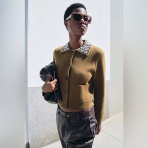ZARA 100% WOOL JEWEL COLLAR JACKET