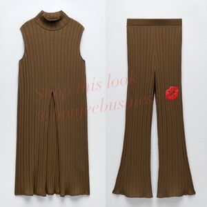 ZARA 2pcs Slit Ribbed Tunic Dress + Flared Ribbed Pants Coord Set BNWT