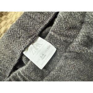 Zara 3-4 year old dark grey herringbone trouser pants. Adorable and easy to dress up or not. Front pockets and elastic waistband. Missing the decorational drawstring (shown last photo) but we wore them without it. Great condition otherwise