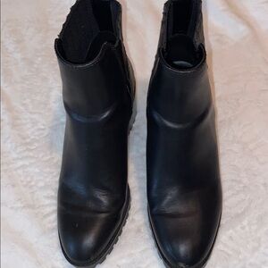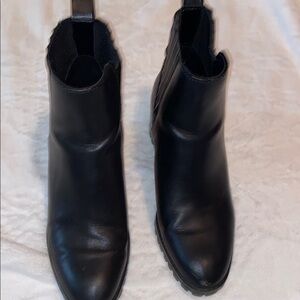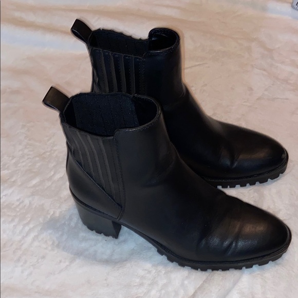 Step out in style with these sleek black ankle boots. Perfect for any occasion, these boots offer both comfort and elegance.good condition