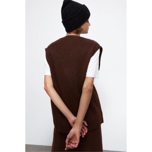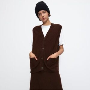 ZARA deep chocolate sleeveless button town with front pockets V neck sweater vest size M