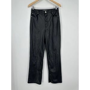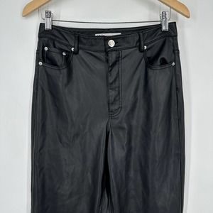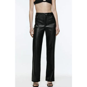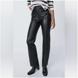 ZARA 90s Wide Leg Faux Leather Pants High Waist Trouser, Black