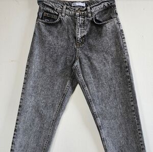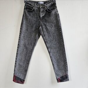 ZARA ACID WASH JEANS BUFFALO PLAID HEM WOMEN'S SIZE 4
