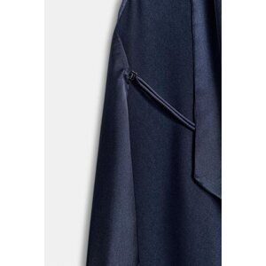 Adjustable halter neck top with tie and bare shoulders. Open back with adjustable strap. Asymmetric hem.
